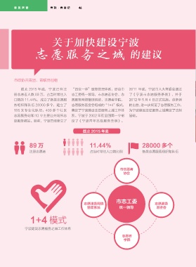务组织和队伍 28000 多个,建立了               志愿服务基金会组成的“1+4”模式, 的出台,进一步规范了志愿服务工作,
